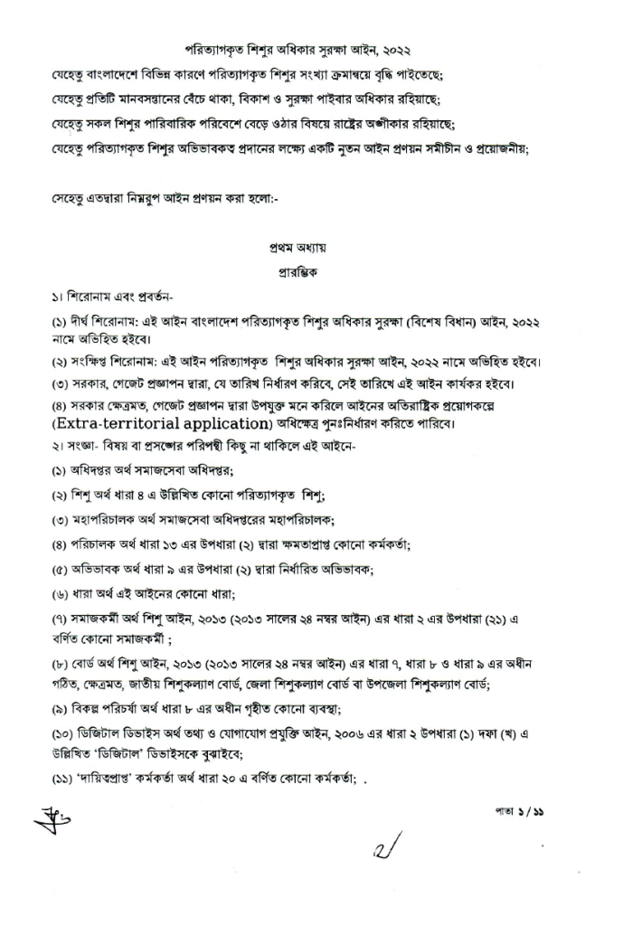 শিশু সুরক্ষা আইন ২০২২: সংশোধিত খসড়া